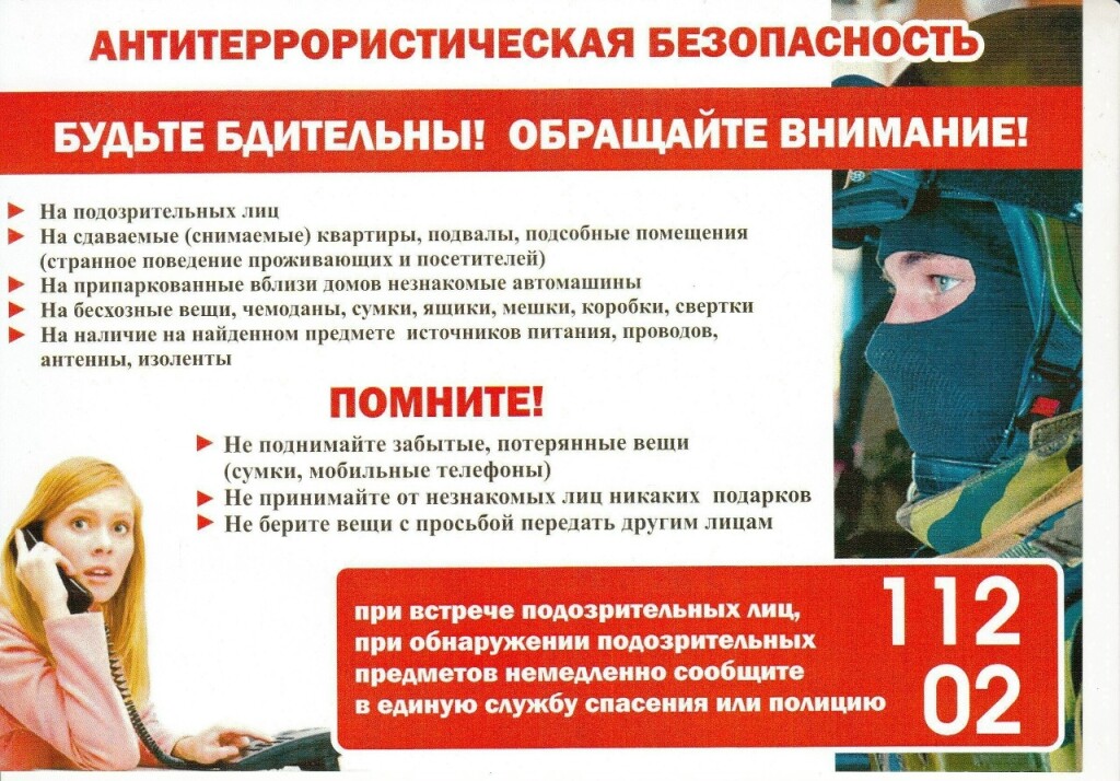 Случайно узнав о готовящемся теракте, немедленно сообщите об этом в правоохранительные органы.