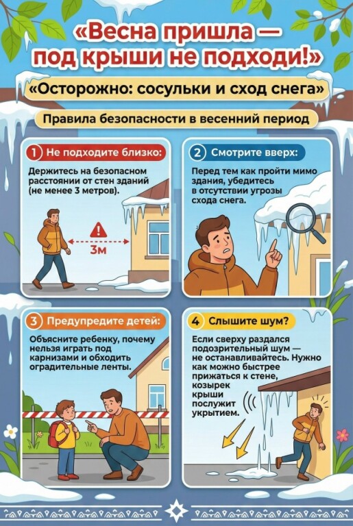 ОСТОРОЖНО! ВОЗМОЖЕН СХОД СНЕГА С КРЫШ